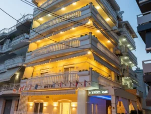 Сучасний бутик-готель на першій лінії моря, просто біля набережної Паралії Катеріні. Поруч безліч кафе, таверн, барів і магазинів. Готель повністю оновлений у 2019 році, і поєднує компактний розмір із хорошим рівнем сервісу. У номерах: кондиціонер, сейф, холодильник, чайник, телевізор, Wi-Fi, ванна кімната з душем та феном; більшість номерів мають балкон. Всі номери з видом на вулицю. До послуг гостей: ресторан, бар, тераса з видом на море, сніданок «шведський стіл», цілодобова стійка реєстрації. Готель чудово підійде парам та сім’ям, які хочуть жити майже на пляжі й одразу в центрі курортного життя.
