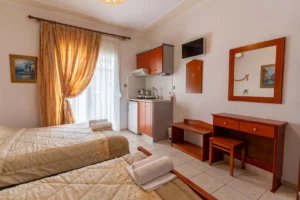 Затишна апарт-вілла в самому серці Паралії Катеріні, у кількох хвилинах прогулянки від піщаного пляжу та набережної. На території є невеликий сад, зона відпочинку, кухня/барбекю та спільний лаунж. Поруч – таверни, кафе, крамниці й сувенірні лавки, тож усе потрібне для відпочинку буквально «під рукою».