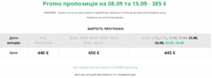 Дата виїзду: 3.08, 9.08, 15.08, 19.08, 21.08